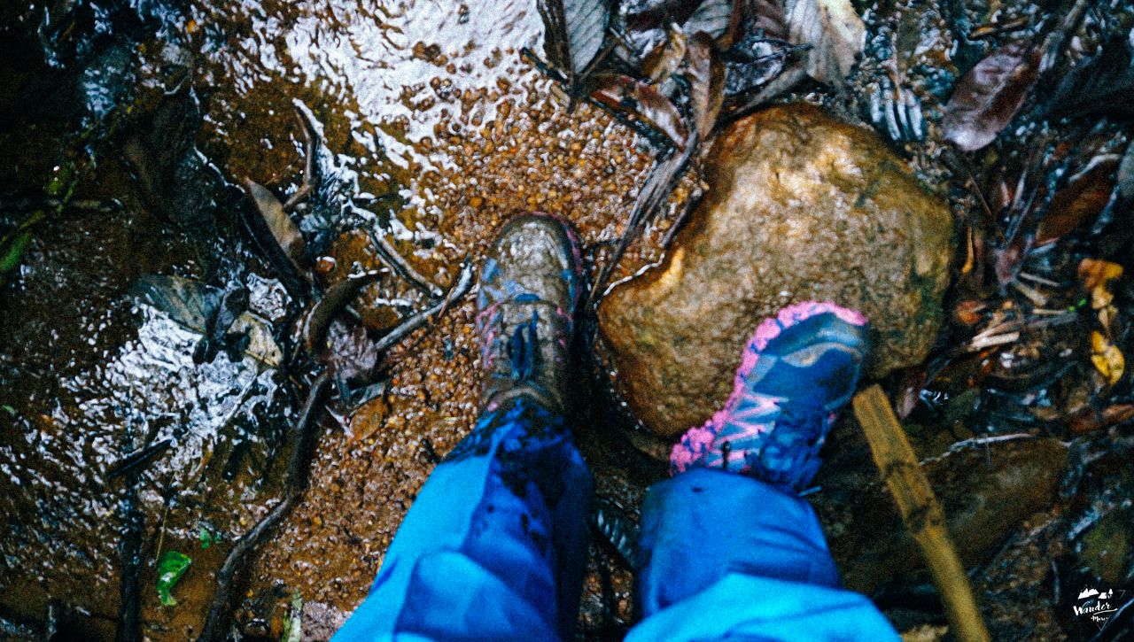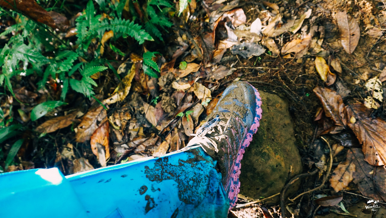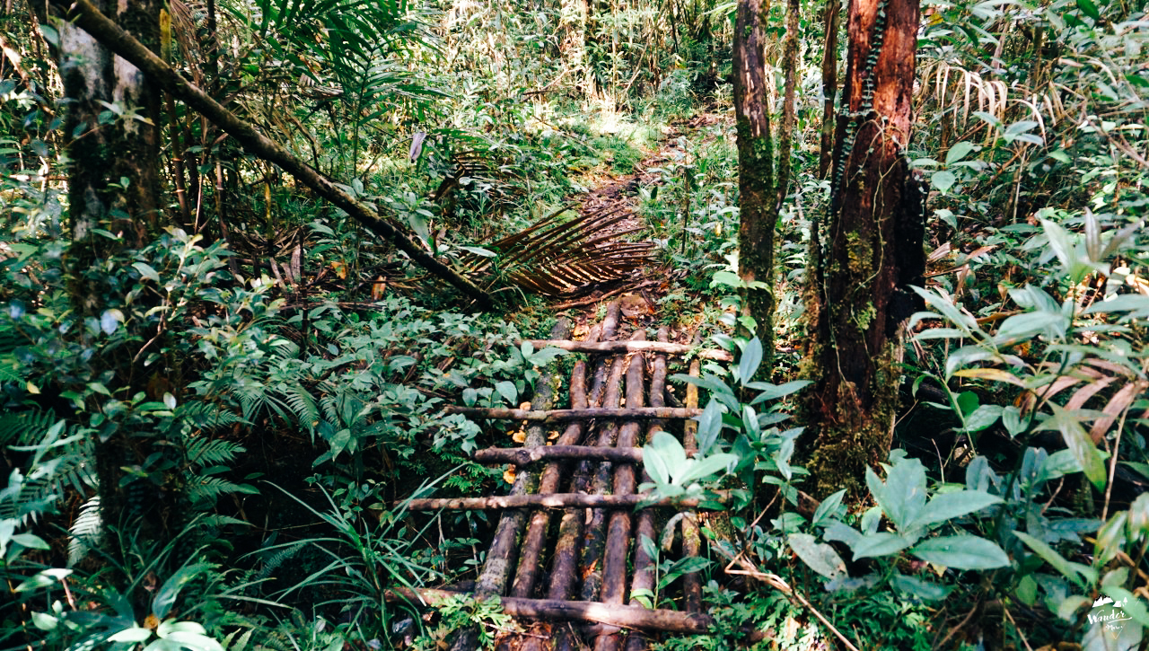 ฉันและคุณลุงที่เป็นไกด์ หรือที่ฉันเรียกว่าพ่อใหญ่ เริ่มออกเดินจากหมู่บ้าน อากาศบนที่ราบสูงโบโลเวนขึ้นชื่อเรื่องความหนาวเย็น และฝนตกพรำ ๆ เดินป่าไปต้องก็ต้องลุ้นกันไปว่าฝนจะตกหรือเปล่า ทางที่ฉันย่ำไปเป็นทางเดินป่าที่ค่อนข้างวิบากราวสนามวิ่งเทรล X Terra เพราะไม่มีทางราบเรียบเลย มีแต่ต้องปีนป่าย ลอด ไต่ กระโดด โหนสะพานแขวนแบบไร้สลิง และเปียกแฉะเปื้อนโคลนจนกลายเป็นเรื่องปกติ เพราะทางเต็มไปด้วยโคลน บวกกับต้องเดินข้ามลำห้วยในบางจุด หากเป็นฤดูน้ำหลาก ต้องโหนสลิงข้ามไปเท่านั้น