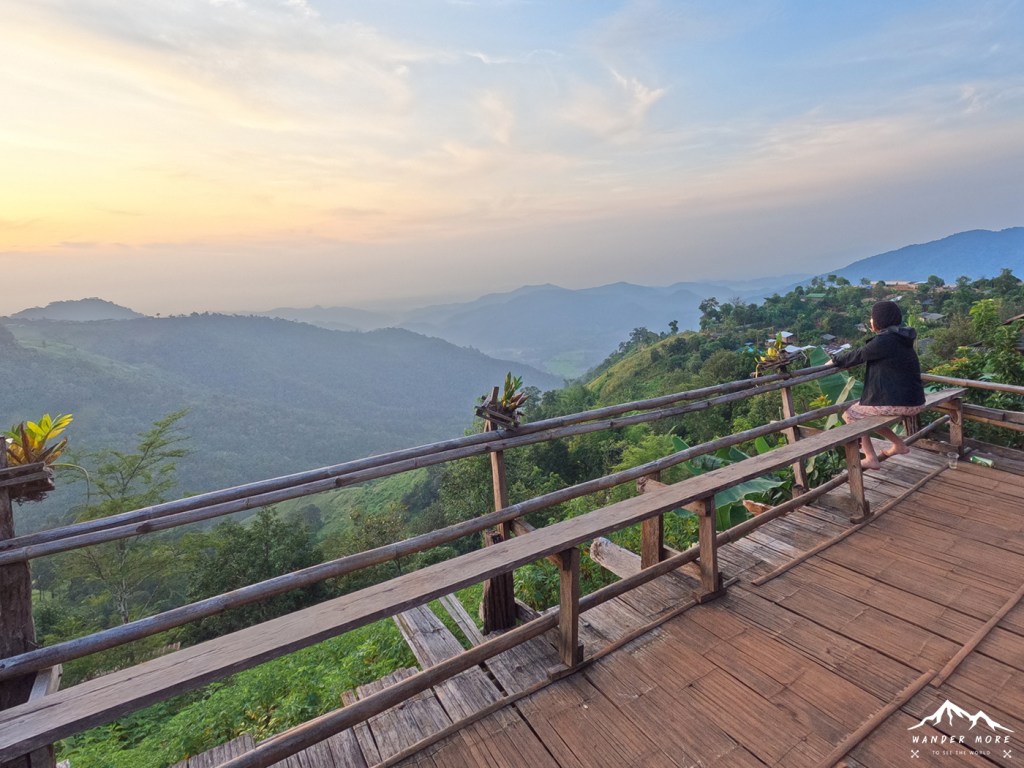 ทะเลหมอกเห็นอยู่ไกลๆ จากจุดชมวิวในหมู่บ้านยามเช้าค่ะ