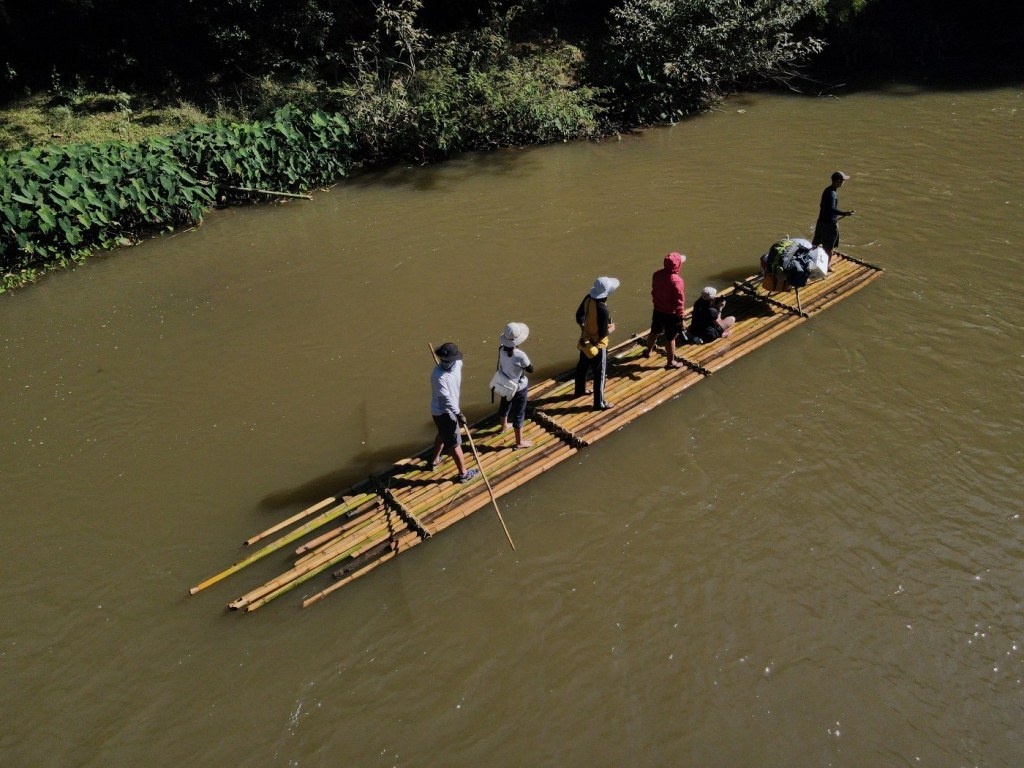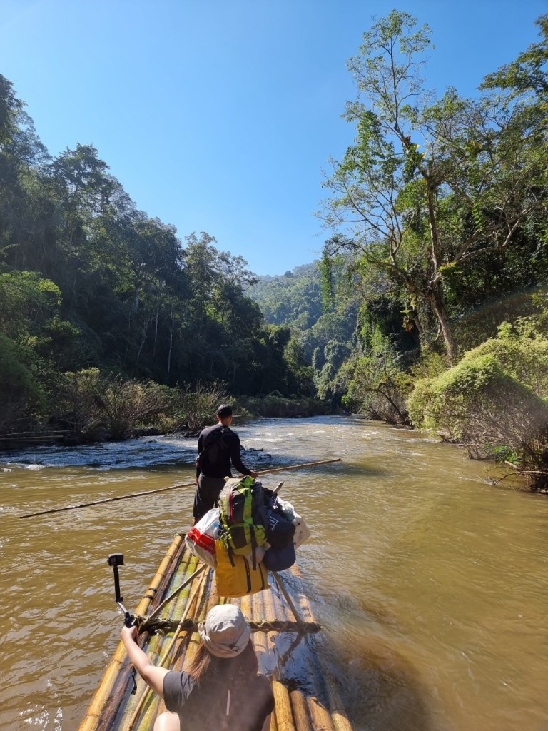 แพของเราล่องไปตามลำน้ำในป่าใหญ่ สองข้างทางจะเห็นวิวสวยๆ พระอาทิตย์ทอแสง เป็นประกายวิบวับในลำน้ำ